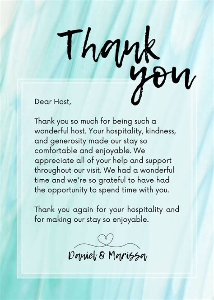 Tailor your thank you message to the specific hosts and the nature of their hospitality. Mention their names and reference shared experiences or unique aspects of your stay.