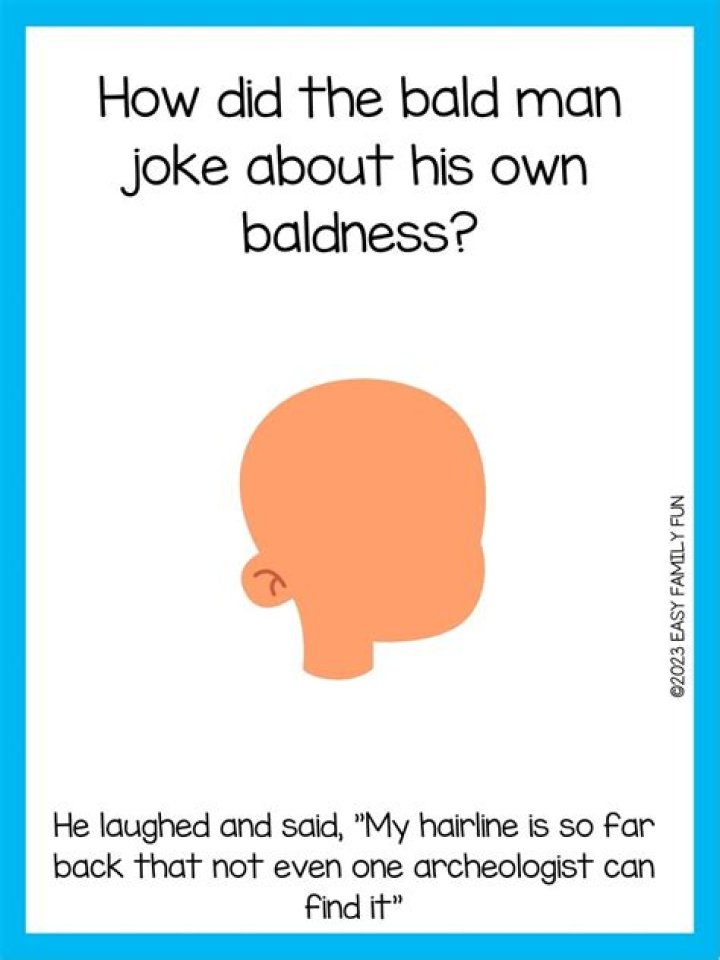 Jokes about bald heads can be funny, but it is important to be respectful and to make sure that the person you are joking with is comfortable with it. This is because baldness can be a sensitive topic for some people. For example, some people may experience hair loss due to medical conditions such as alopecia or cancer treatment. In these cases, making jokes about baldness could be seen as insensitive or hurtful.