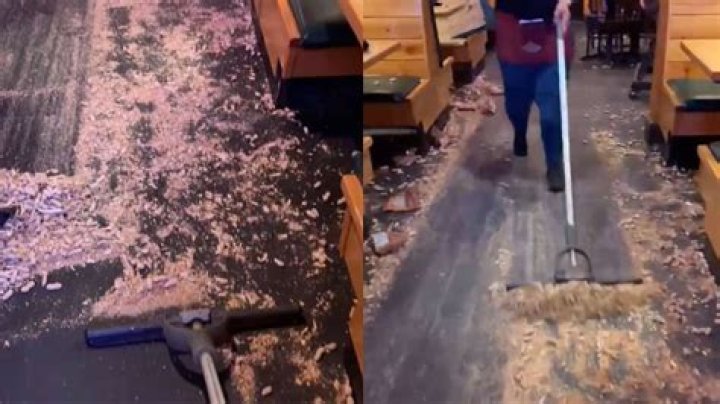 Question 4: What happens to the peanut shells after they are swept up?